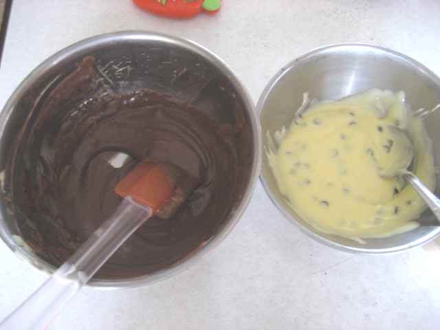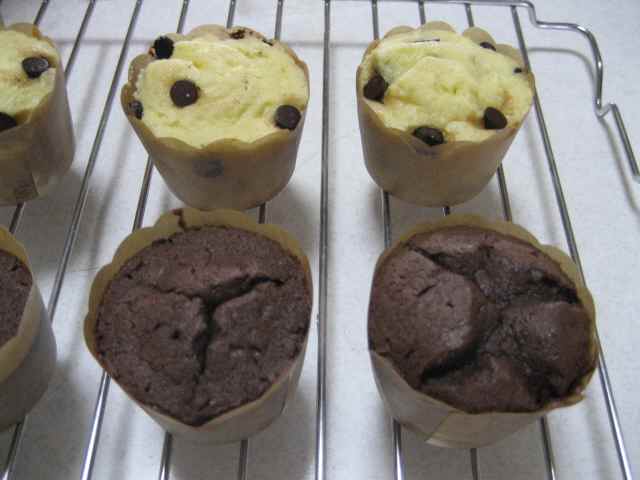 お菓子作り初心者の私&娘でも本当に作れるのか早速挑戦!! 自分で用意する材料、 玉子1個 牛乳大さじ3 サラダ油大さじ3 準備する道具、 ボウル2個 泡だて器 ゴムベラ スプーン これだけです。楽チンだわ♪ 以下の手順をする前に、オーブンを180度に予熱しておきます。 作り始めるとあっという間にできちゃうので・・ ①材料を混ぜる まず上の材料を全部入れて軽くまぜまぜ。油が混ざるくらいでいいと思います。 続いてマフィンミックスを入れて、白っぽくなめらかになるまで2分間まぜまぜ。 電動のミキサーで約2分なので手で混ぜる人はもっとかかると思います。 ②生地を2等分する ボウルに半分の量を移します。一方にはココアパウダーを1袋入れてよく混ぜて、 もう一方にはチョコチップを1/2袋ほど軽く混ぜました。 ③生地をカップに入れて焼く カップに流し込む作業は、子供が苦戦してました; 大きいスプーンですくって入れてもいいですが、ボウルをもってそっと流し込む方が うまくいくかもしれません。 余っているチョコチップを上にパラパラのせました。 ちょうど予熱が終わっている頃なのでオーブンの中へいざ! レシピでは180度で15~18分と書いていたので、わたしは18分焼きました。 で、焼き上がりがこちら・・・ オーブンの中では可愛く膨らんでいたのに、焼く方が足りなかったのか? 少ししぼんでしまいました・・・ あと2,3分焼いて少しこんがりさせたかったです、反省。 でもお味は甘くて優しい味でしたよ(^^)vオイシイ! 特にチョコチップが香ばしくなっていて、 甘いプレーン生地に香ばしくなったチョコ、美味しかったです♪ お菓子材料の店「クオカ」へ 学校や幼稚園などでプールの時期が近づいてくると、